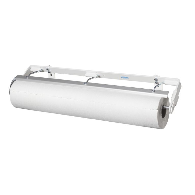 Держатель для медицинских простыней с металлическим корпусом, может крепиться к кушетке и к стене горизонтально или вертикально. Имеет прижимной нож для удобства отбора бумажных простыней.