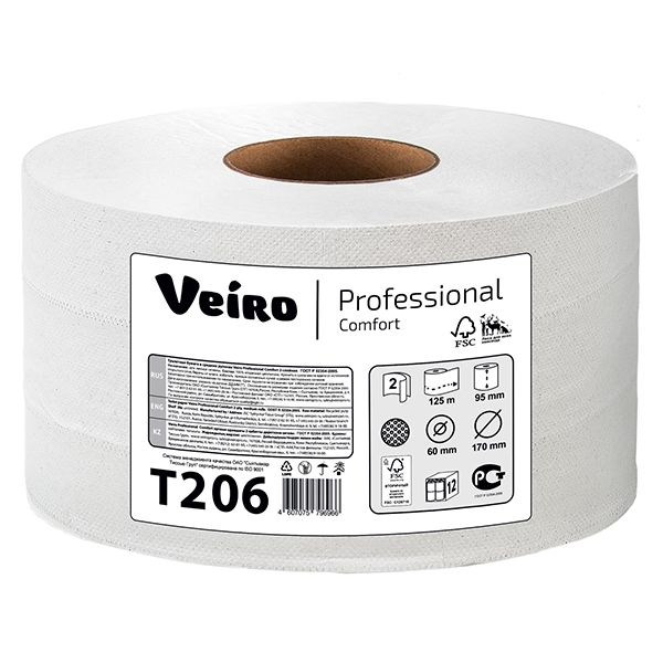 Veiro Professional Comfort - Туалетная бумага среднего хорошего класса Вайро для мест с не высоким умеренным использованием туалетной комнаты. Комфорт и мягкость европейского качества в одном рулоне. Рекомедуется для ресторанов, кафе, пиццерий, салонов красоты, стоматологий, торговых центров, офисов и т.д.