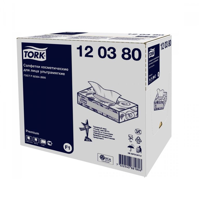 Категория качества - Tork Premium. Очень мягкие и гигроскопичные косметические салфетки из натуральной целлюлозы с добавлением волокон хлопка. Обладают высокой впитвающей способностью и не раздражают кожу. Подходят для применения в медицинских учреждениях, стоматологических клиниках и косметических салонах красоты. Можно использовать с диспенсером и без него.
