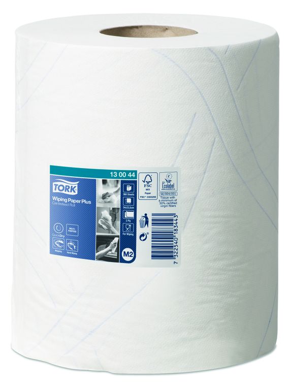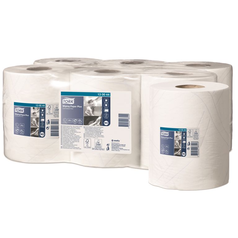 Универсальный Двухслойный материал с перфорацией Торк Плюс. Подходит для протирания рук и очистки поверхностей даже с применением чистящих средств. Разрешен для использования на пищевом производстве.