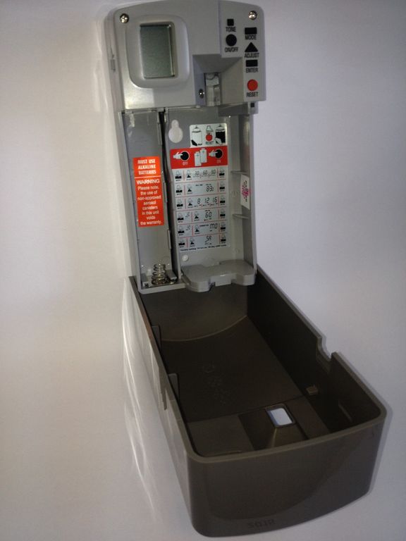 Дозирующий автоматический диспенсер с корпусом из пластика цвета металлик. Будет идеально сочетаться с другими диспенсерами и мусорной корзиной серии Tork Image Design. Простой в использовании, открывается кнопкой без ключа. Есть возможность программирования на 30, 60 или 90 дней: работа 8, 12, 16 или 24 часа в сутки, 5-7 дней в неделю, индикатор заряда батареи и наполнения аэрозоля. При необходимости замены картриджа подается звуковойц сигнал.