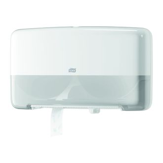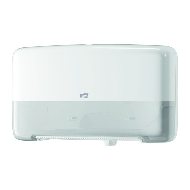 Белый пластиковый диспенсер Tork для двух целых рулонов туалетной бумаги длиной до 200 метров Т2. При малом габаритном размере вмещает большой объем бумаги, устанавливается в небольших туалетных комнатах со средней посещаемостью. Предусмотрена функция полного использования каждого рулона, доступ ко второму рулону открывается автоматически после окончания первого. Смена рулона производится переключателем на дне держателя. Перезаправить диспенсер можно в любой момент. Внутри диспенсера предусмотрен специальный стопор рулона, который предотвращает чрезмерный расход бумаги и дает более бесшумное вращение рулона.